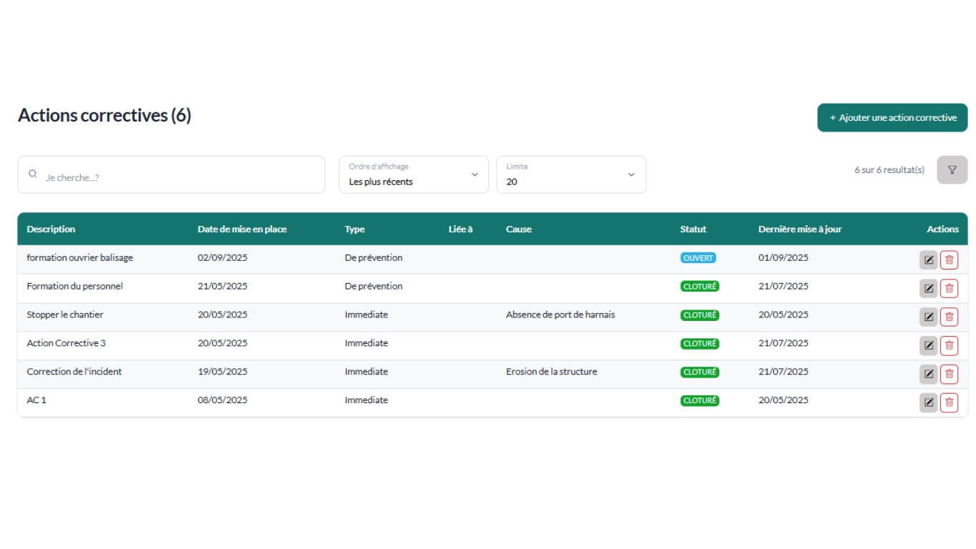 - Gestion centralisée des actions correctives